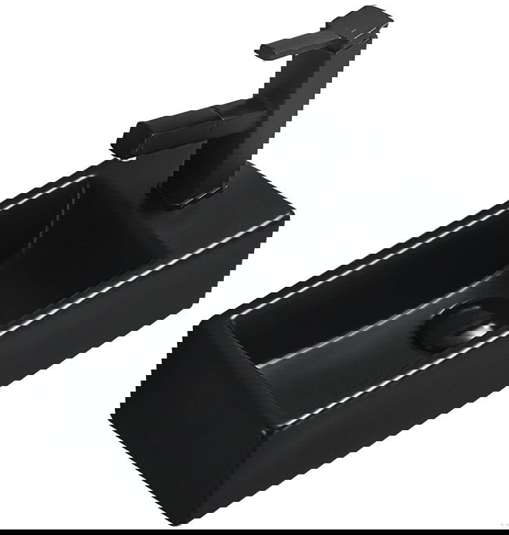 Tvättstället har ett hål där vi kan montera en kran. Detta sparar värdefull plats i badrummet och framhäver dess estetik. Denna lösning möjliggör även enklare rengöring runt tvättstället.