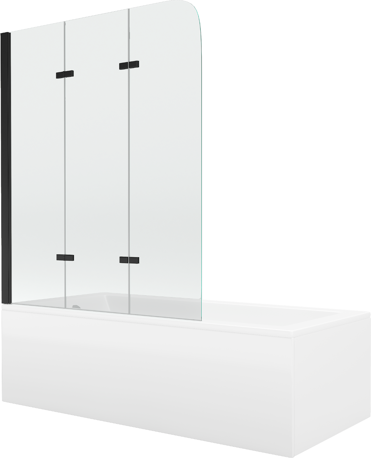 Mexen Cubik rektangulärt badkar 160 x 70 cm med klädsel och 3-panel skärm 120 cm, transparent, svart - 550316070X9012037000