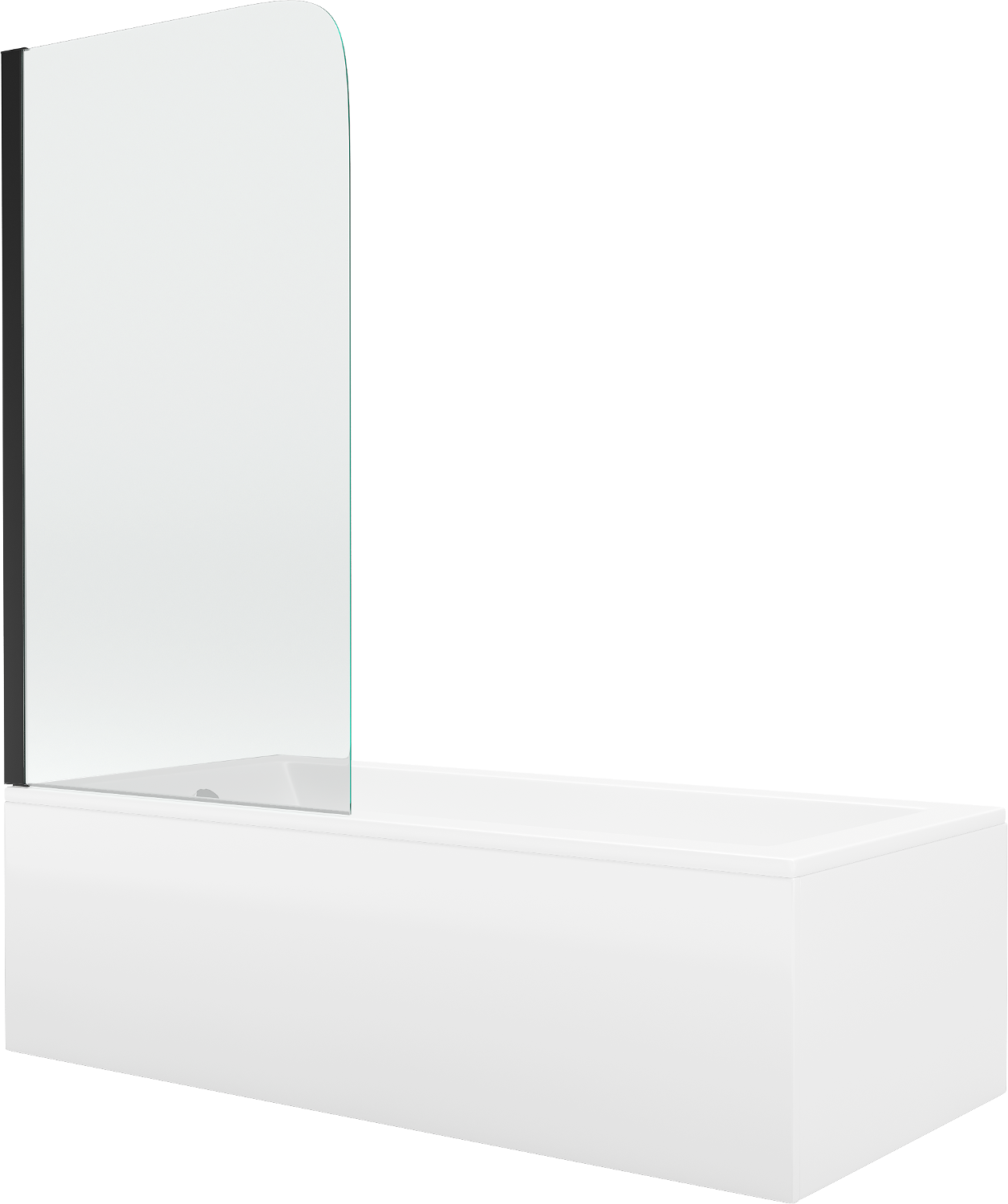 Mexen Cubik rektangulärt badkar 170 x 70 cm med front och skärmvägg i 1 panel 70 cm, transparent, svart