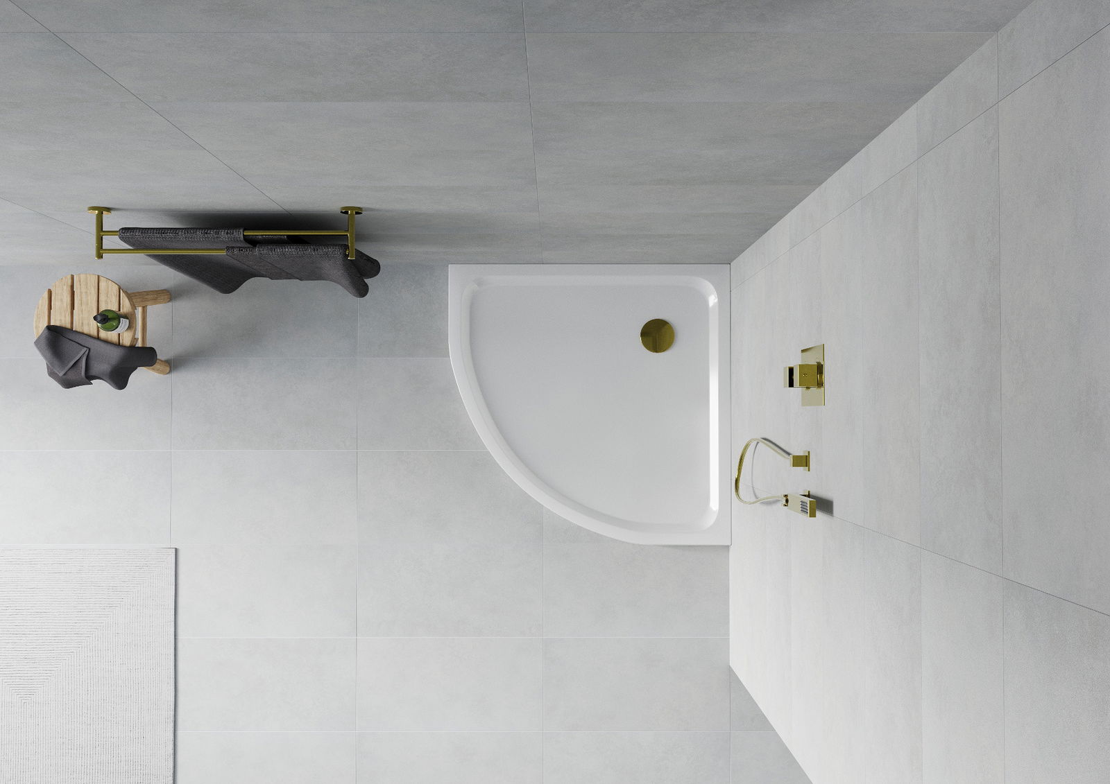 Mexen Flat halvcirkelformad duschbricka slim 80 x 80 cm, vit, guld avlopp - 41108080G
