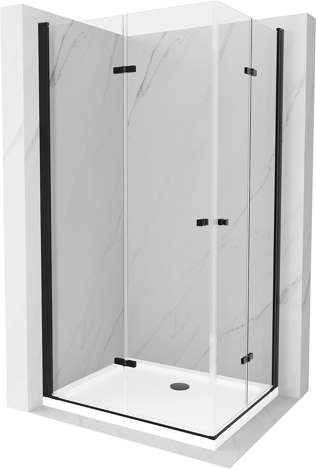 Mexen Lima Duo vikbar duschkabin 80 x 70 cm, transparent, svart + Flat duschkar - 856-080-070-70-02-4010B