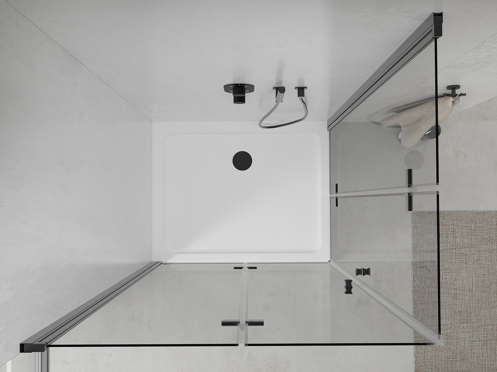 Det praktiska och bekväma handtaget är tillverkat av hållbar och tålig metall. Den moderna formen i kombination med en finish som matchar profilernas färg ger helheten ett modernt och stilfullt utseende, samtidigt som det framhäver estetiken i varje badrum.