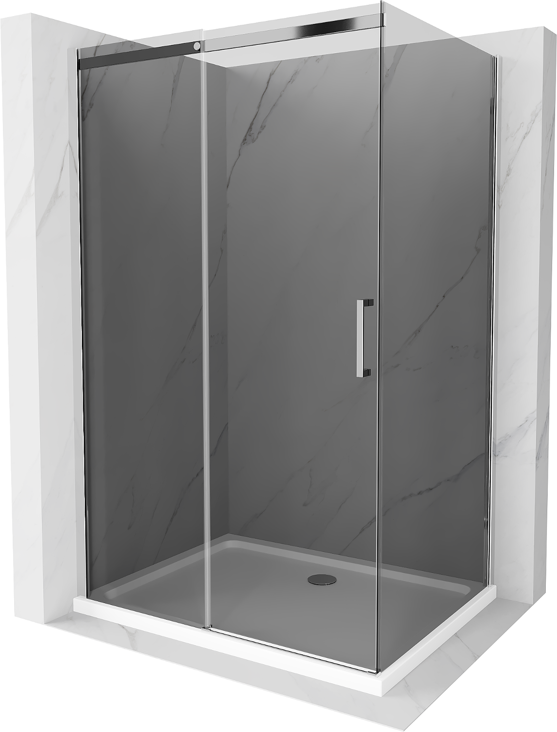 Mexen Omega skjutbar duschkabin 140 x 100 cm, grafit, krom + duschkar Flat, vit - 825-140-100-01-40-4010