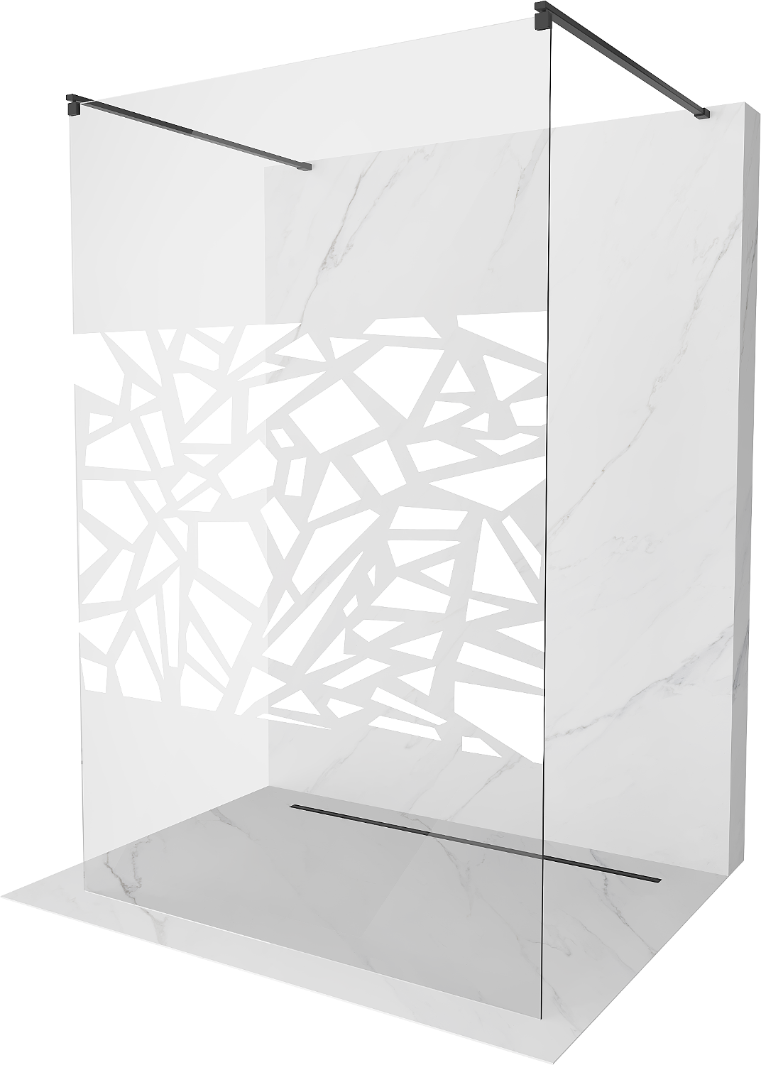 Mexen Kioto friliggande duschvägg 110 x 200 cm, vitt mönster 8 mm, svart - 800-110-002-70-85
