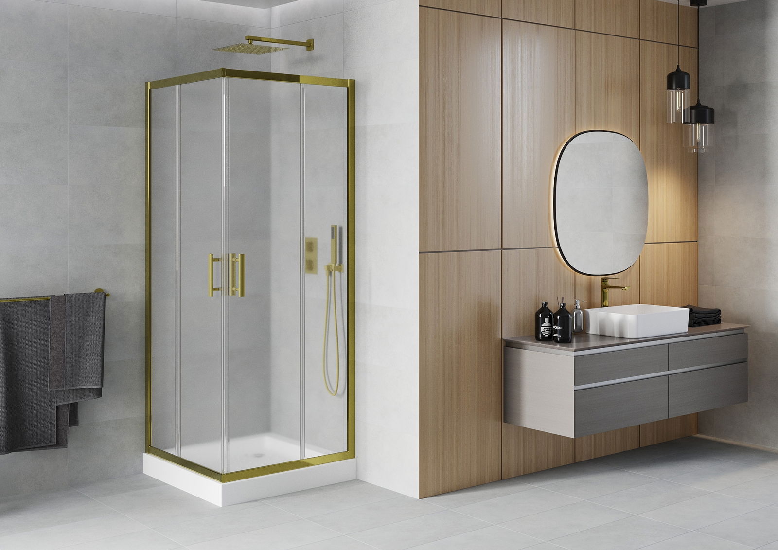 Det praktiska och bekväma handtaget är tillverkat av hållbar och tålig metall. Den moderna formen i kombination med en finish som matchar profilernas färg ger helheten ett modernt och stilfullt utseende, samtidigt som det framhäver estetiken i varje badrum.