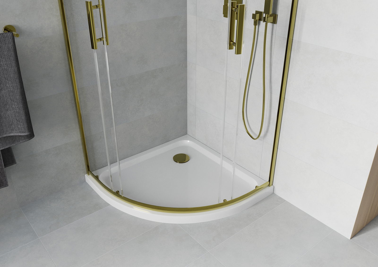 Det praktiska och bekväma handtaget är tillverkat av hållbar och tålig metall. Den moderna formen i kombination med en finish som matchar profilernas färg ger helheten ett modernt och stilfullt utseende, samtidigt som det framhäver estetiken i varje badrum.