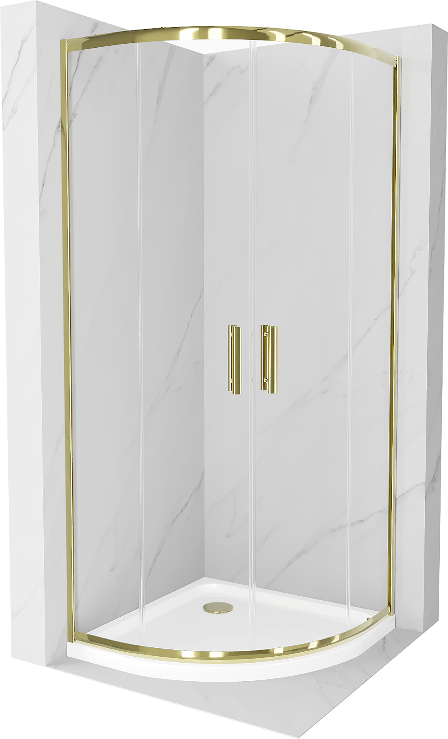 Mexen Rio halvcirkelformat duschkabin 90 x 90 cm, transparent, guld + Flat duschkar, vit - 863-090-090-50-00-4110G
