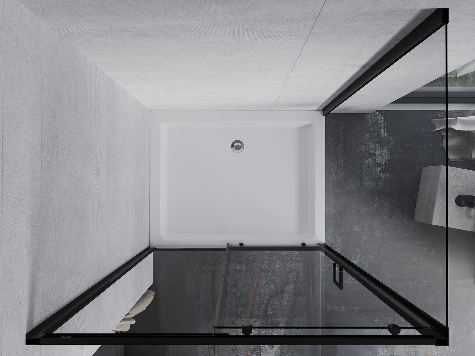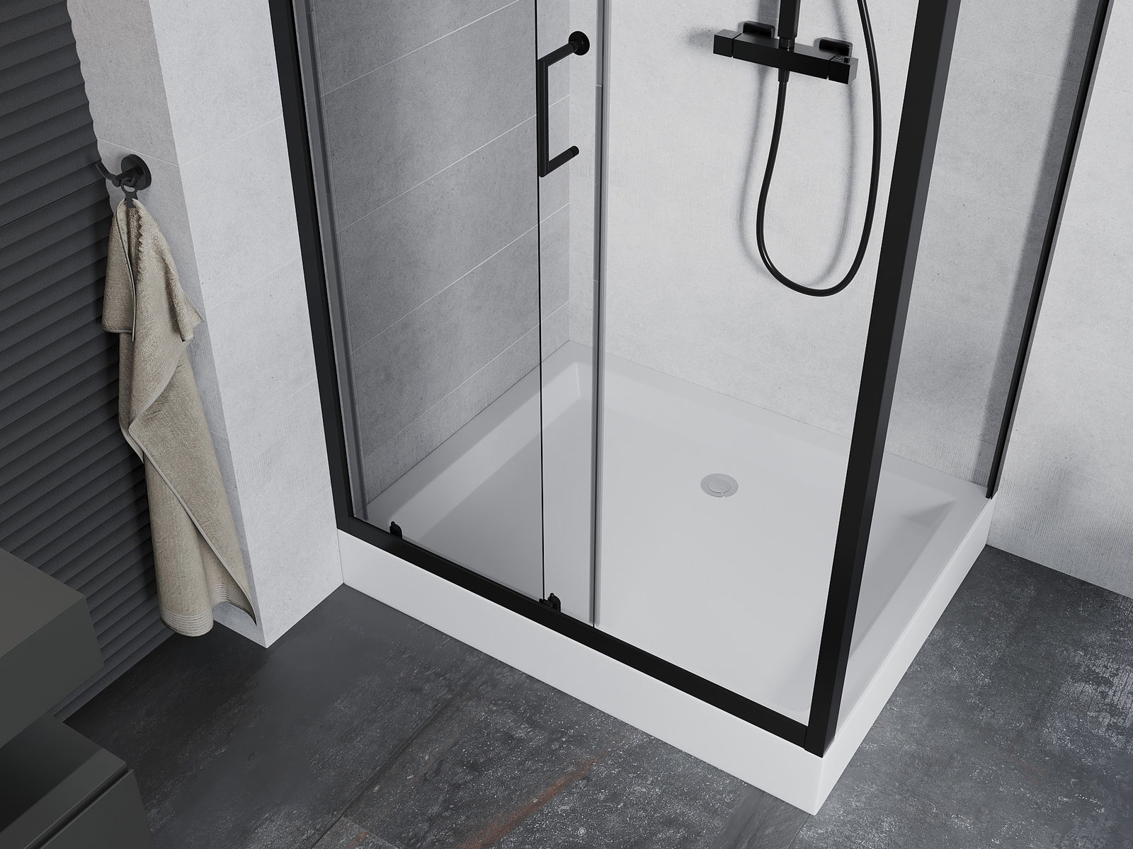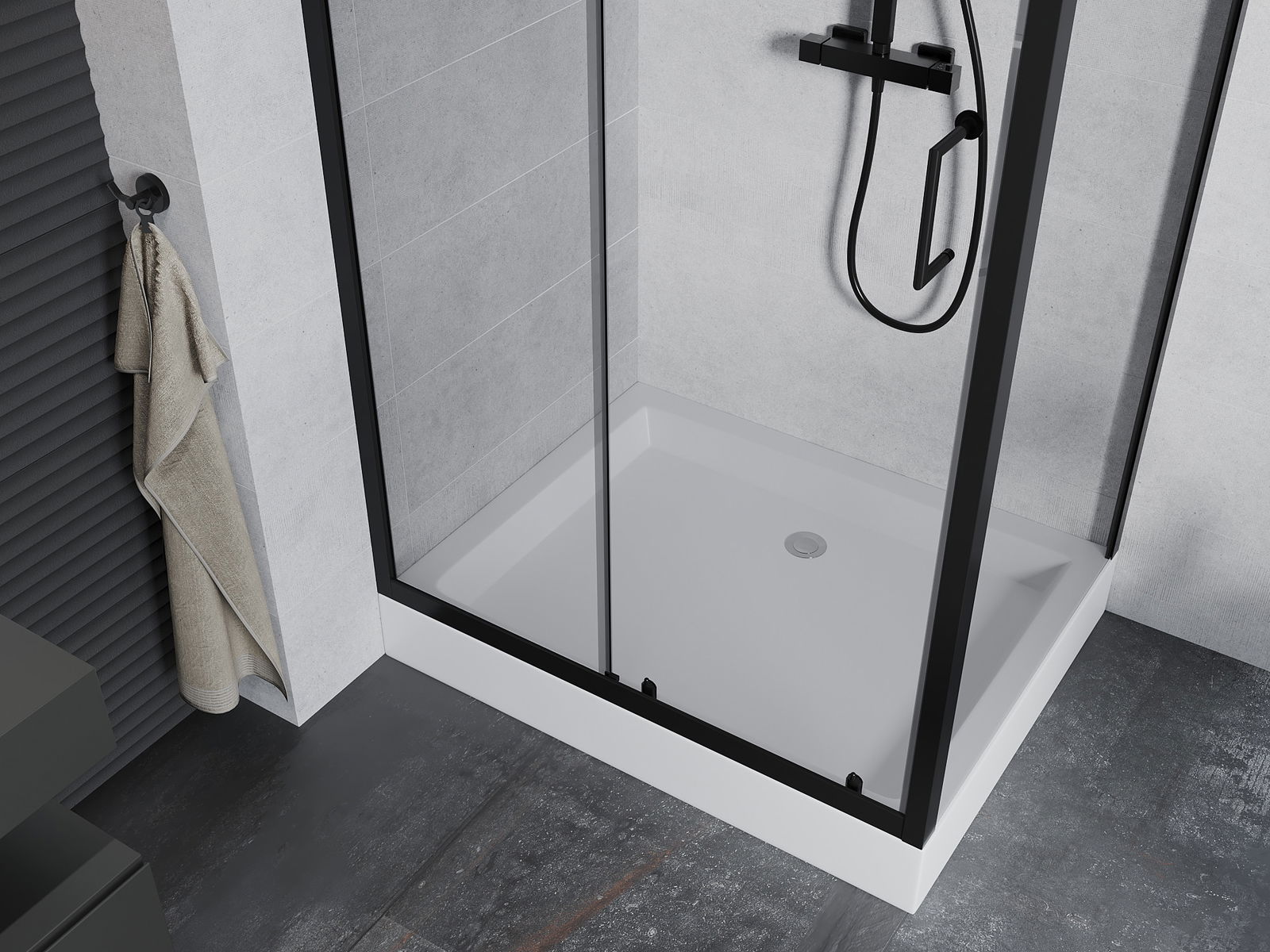 Mexen Apia skjutbar duschkabin 120 x 80 cm, transparent, svart + Rio duschkar - 840-120-080-70-00-4510
