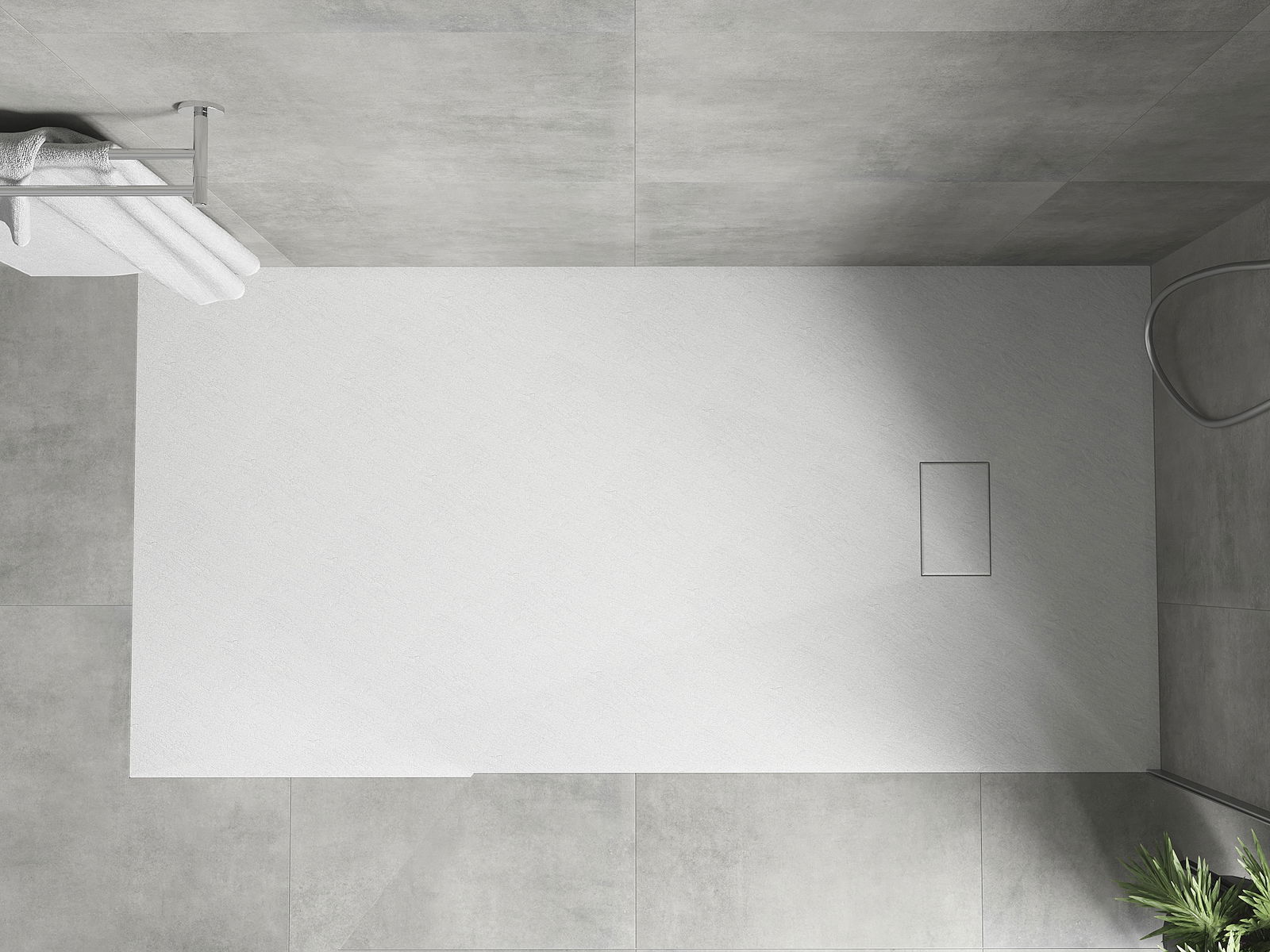 Ytan på duschbrickan påminner om sten i sin struktur. Den utgör en unik kombination av naturligt utseende med modern inredning. Den tillför karaktär, framhäver estetik och elegans i badrummets inredning och fascinerar med sin form.