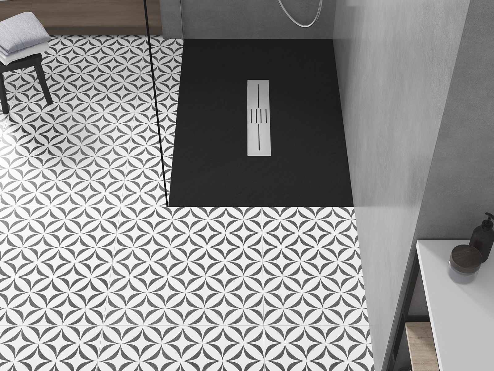 Den låga höjden på duschbrickan möjliggör traditionell montering på golvytan eller infällning i golvet, vilket skapar en unik, enhetlig yta. Flexibiliteten i monteringen gör det möjligt att anpassa duschbrickan till olika interiörarrangemang.