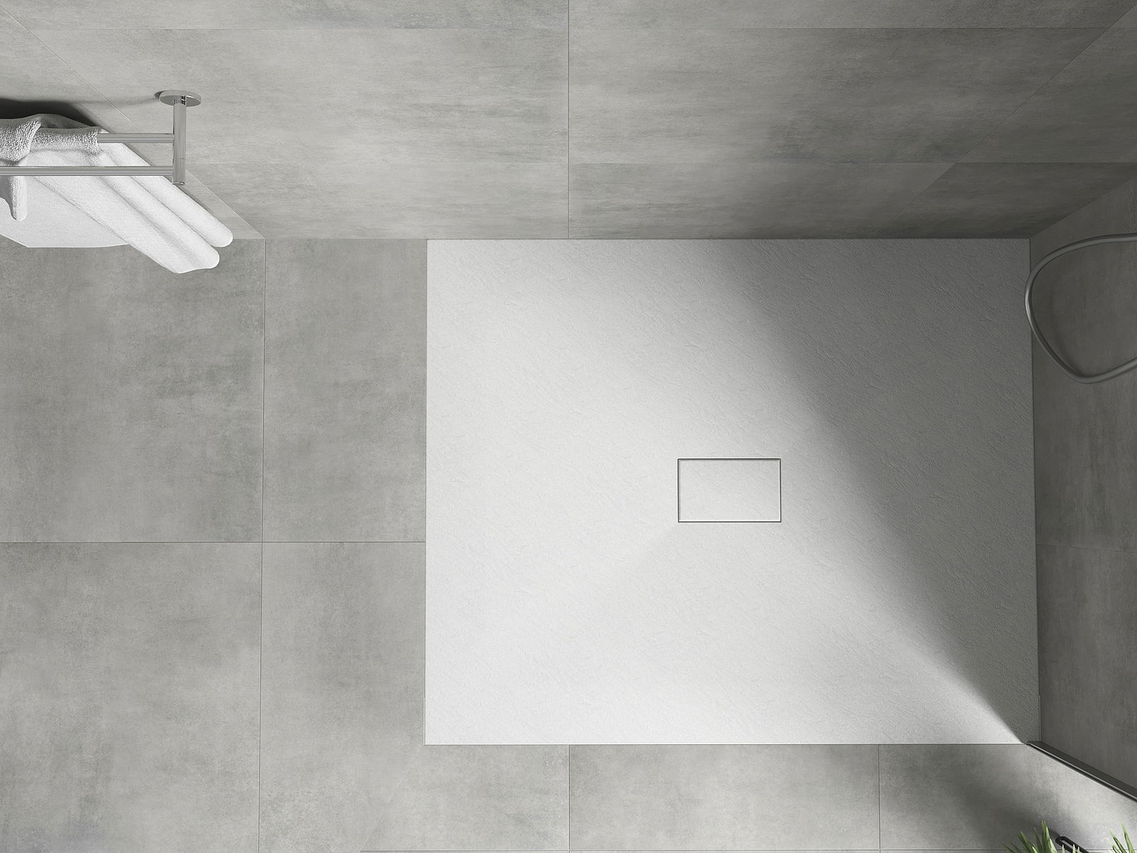 Ytan på duschbrickan påminner om sten i sin struktur. Den utgör en unik kombination av naturligt utseende med modern inredning. Den tillför karaktär, framhäver estetik och elegans i badrummets inredning och fascinerar med sin form.