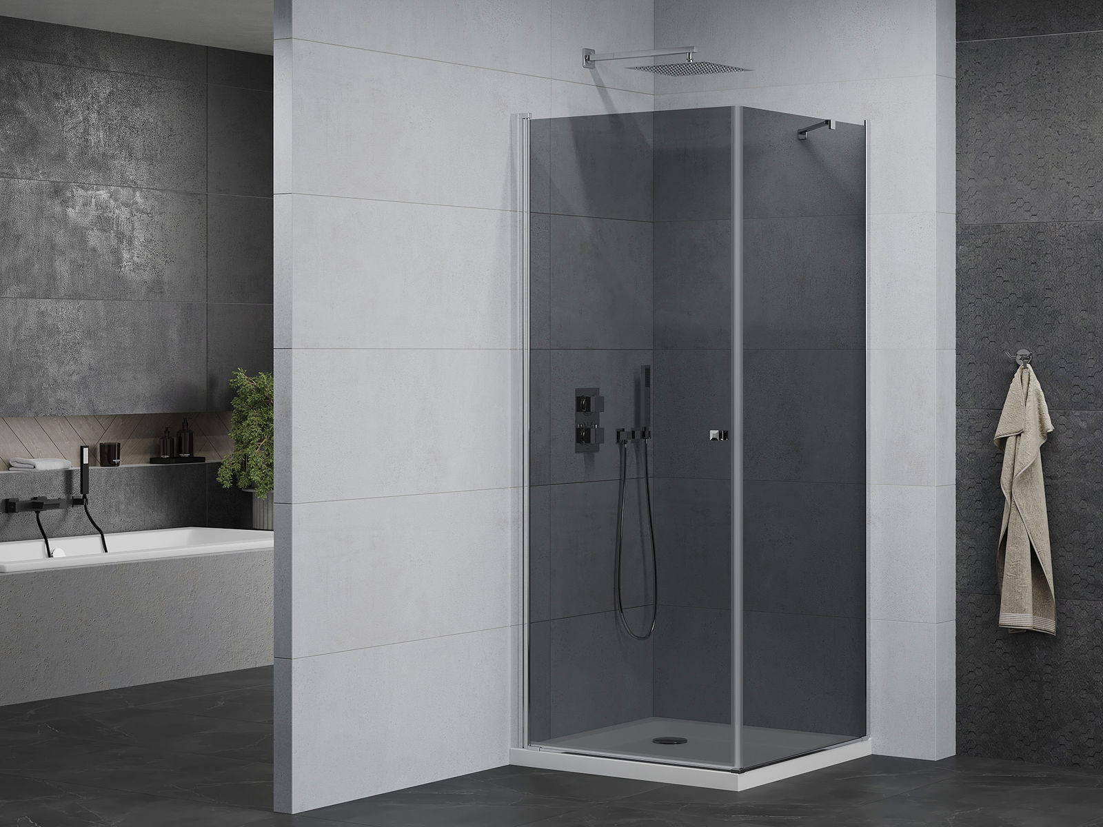 Mexen Pretoria Svävande duschkabin 70 x 70 cm, grafit, krom + Flat-duschkar - 852-070-070-01-40-4010