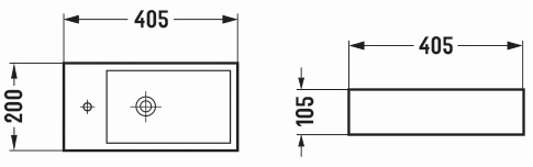 Tvättstället har ett hål där vi kan montera en kran. Detta sparar värdefull plats i badrummet och framhäver dess estetik. Denna lösning möjliggör även enklare rengöring runt tvättstället.