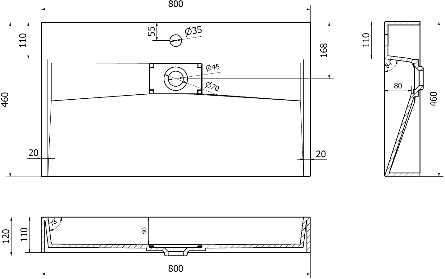 Tvättstället har ett hål där vi kan montera en kran. Detta sparar värdefull plats i badrummet och framhäver dess estetik. Denna lösning möjliggör även enklare rengöring runt tvättstället.