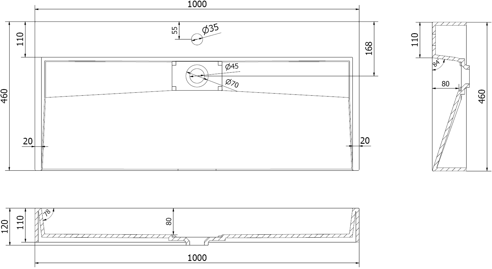 Tvättstället har ett hål där vi kan montera en kran. Detta sparar värdefull plats i badrummet och framhäver dess estetik. Denna lösning möjliggör även enklare rengöring runt tvättstället.