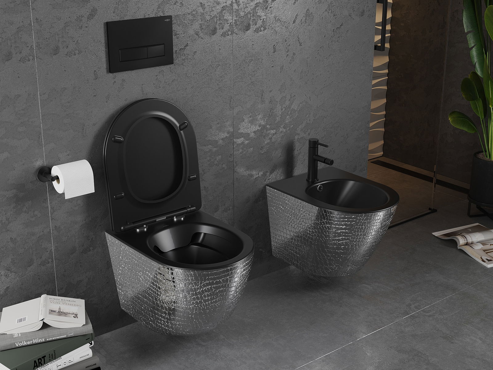 Den långsamt fallande sitsen är utrustad med ett speciellt system som bromsar dess snabba och plötsliga nedgång. Systemet eliminerar effektivt problemet med att sitsen smäller och minimerar buller, vilket ger en smidig och tyst stängning av toaletten.