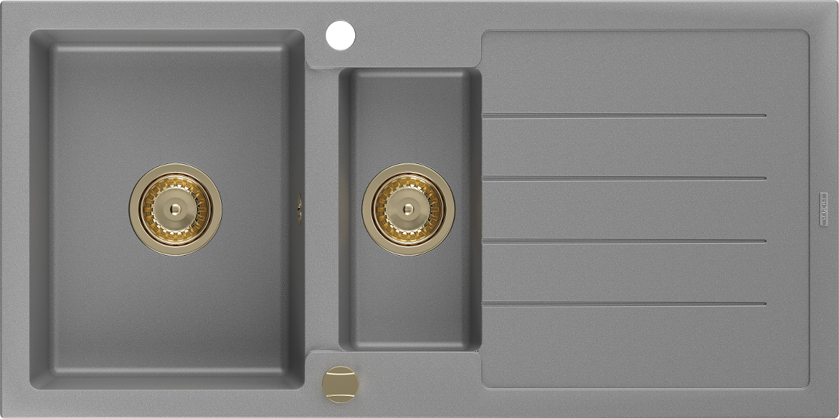 Diskbänken har 2 förberedda hål med en diameter på 35 mm, för självständig urstansning. De kan användas bl.a. för installation av en dispenser för vätska, vilket eliminerar förekomsten av plastflaskor i köket och ger det en elegant finish.