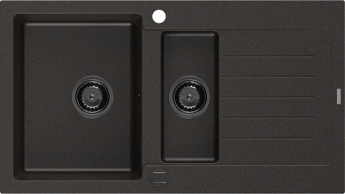 Mexen Matias granitdiskho 1,5-kammare med avrinningsyta 900 x 505 mm, svart/guld metallic, svart sifon - 6502901505-75-B