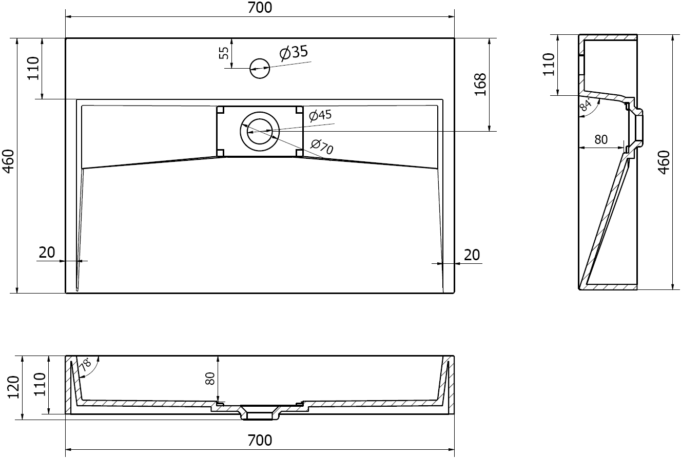 Tvättstället har ett hål där vi kan montera en kran. Detta sparar värdefull plats i badrummet och framhäver dess estetik. Denna lösning möjliggör även enklare rengöring runt tvättstället.