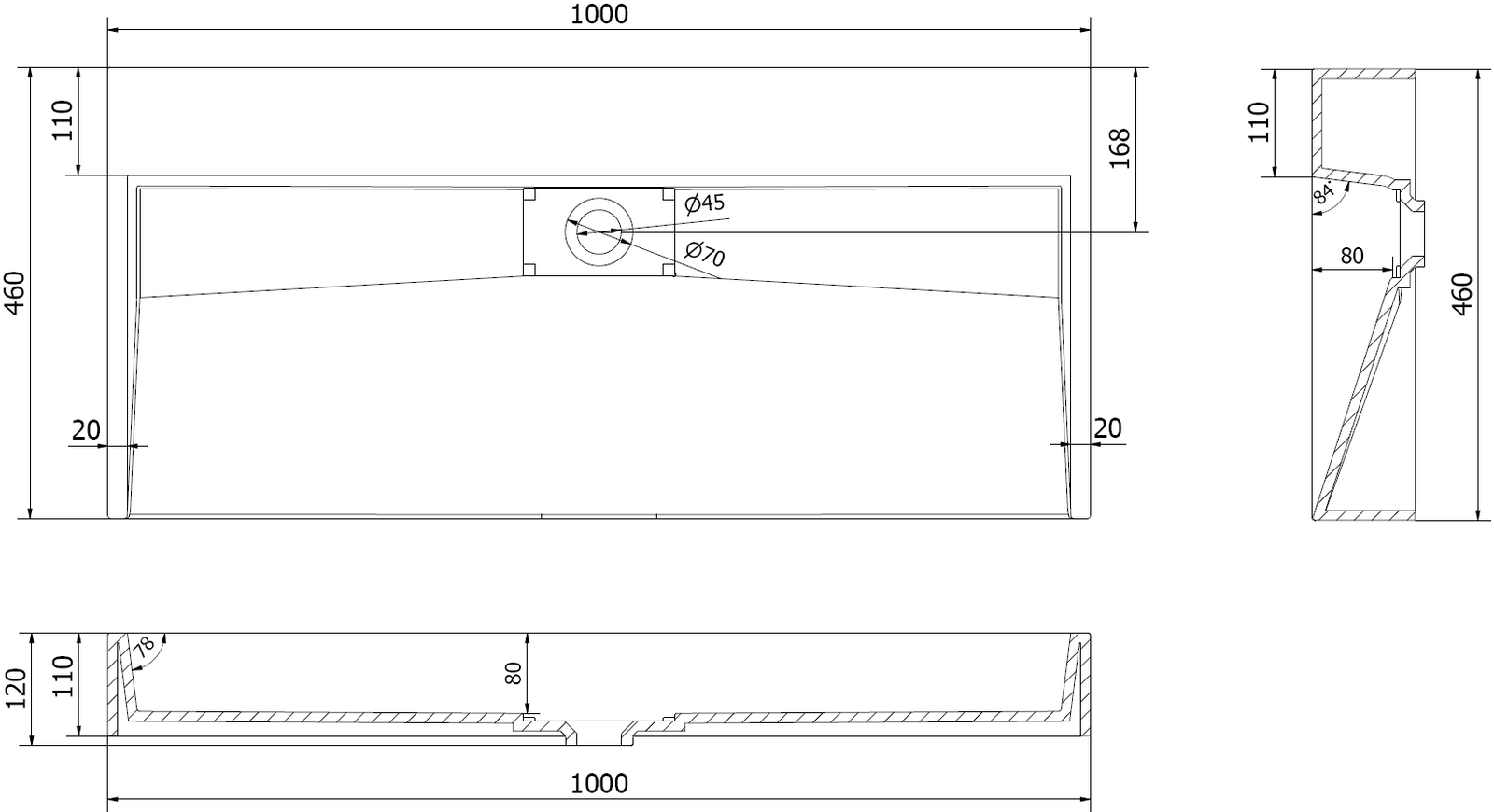 Mexen Ava bänkskål av komposit B/O 100 x 46 cm, svart - 23011070