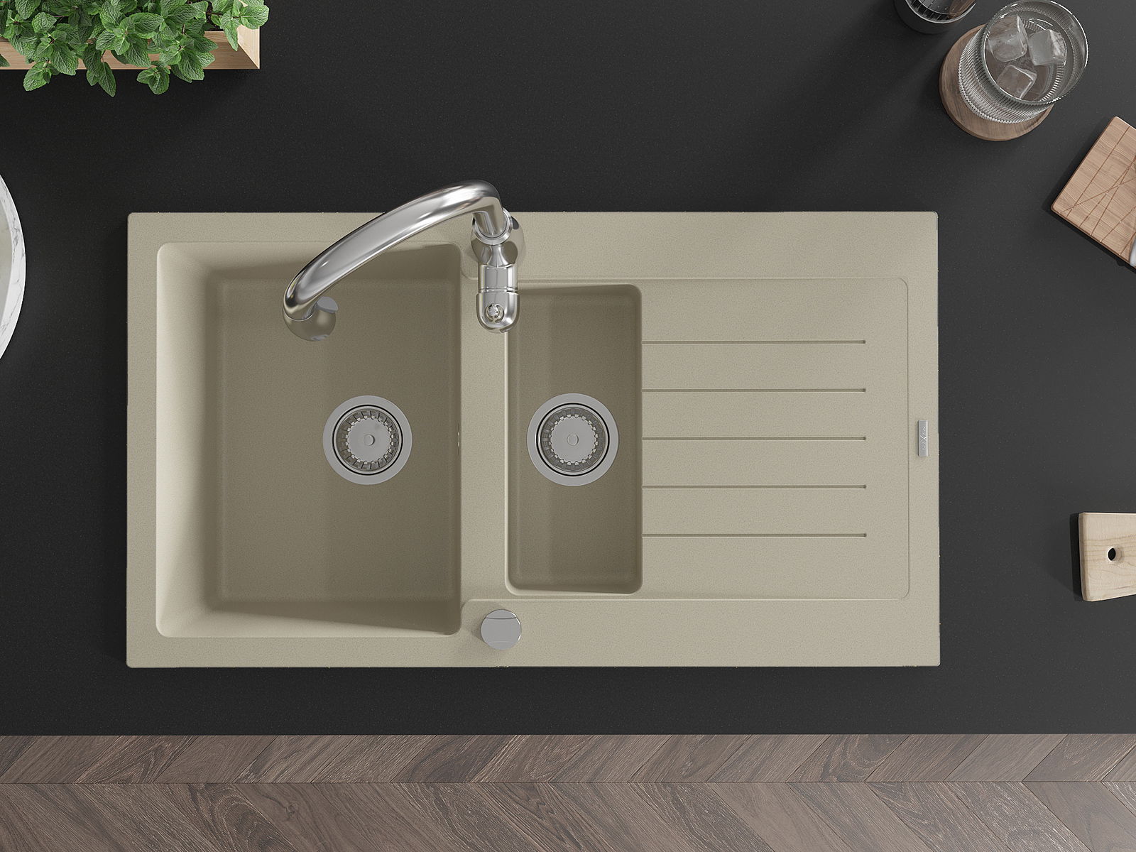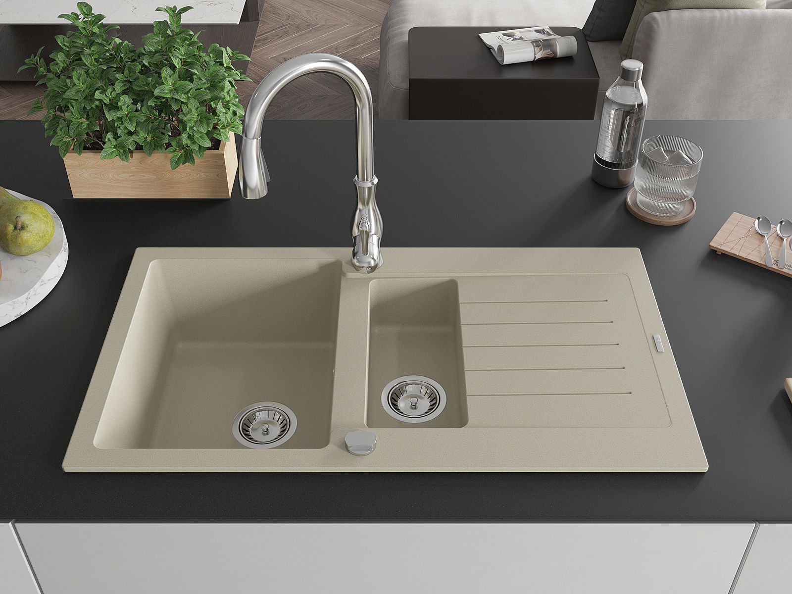 En väl skyddad yta på diskbänken förhindrar att smuts tränger in i dess inre strukturer. Tack vare detta är det ännu enklare att hålla diskbänken ren, och dess yta behåller sin estetik längre.