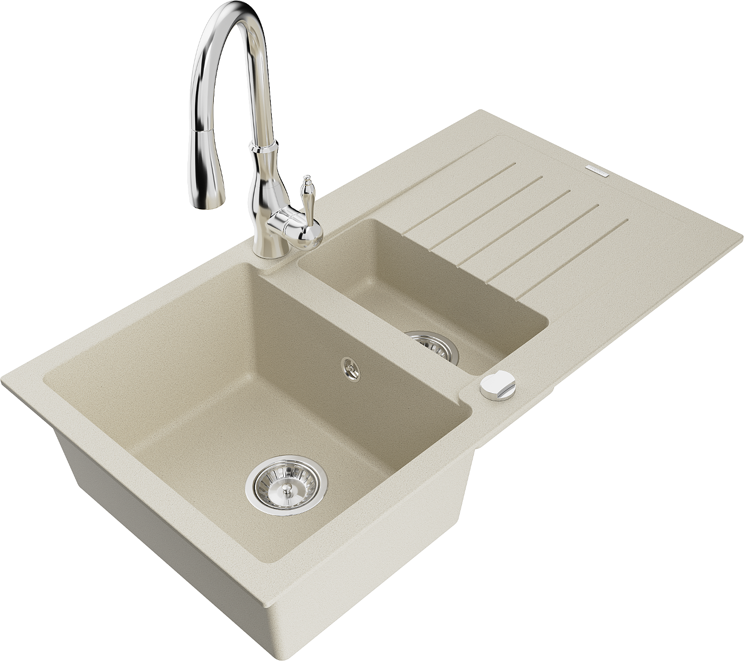 Mexen Matias Granitdiskho med 1,5 ho och avrinningsyta samt köksblandare Savita, beige - 6502-69-672601-00