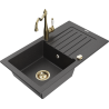 Mexen Pablo 1-facks granitdiskbänk med avrinningsyta och köksblandare Carla, svart/guldig metallic - 6510-75-670700-50