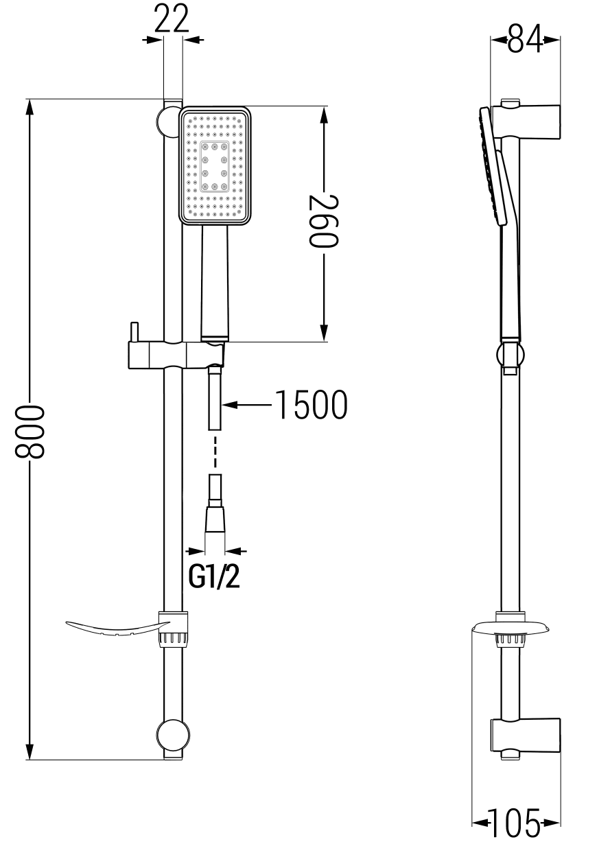 Bredd på stång: 22 mm