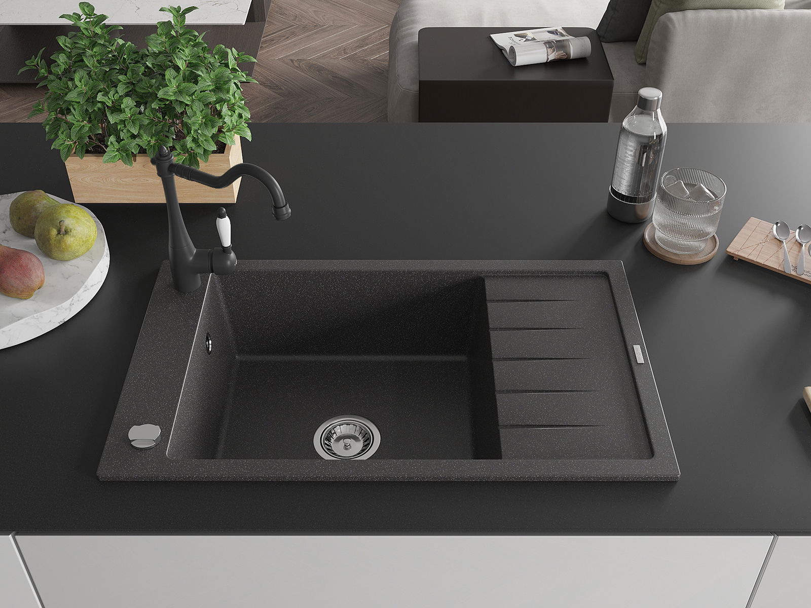 En väl skyddad yta på diskbänken förhindrar att smuts tränger in i dess inre strukturer. Tack vare detta är det ännu enklare att hålla diskbänken ren, och dess yta behåller sin estetik längre.
