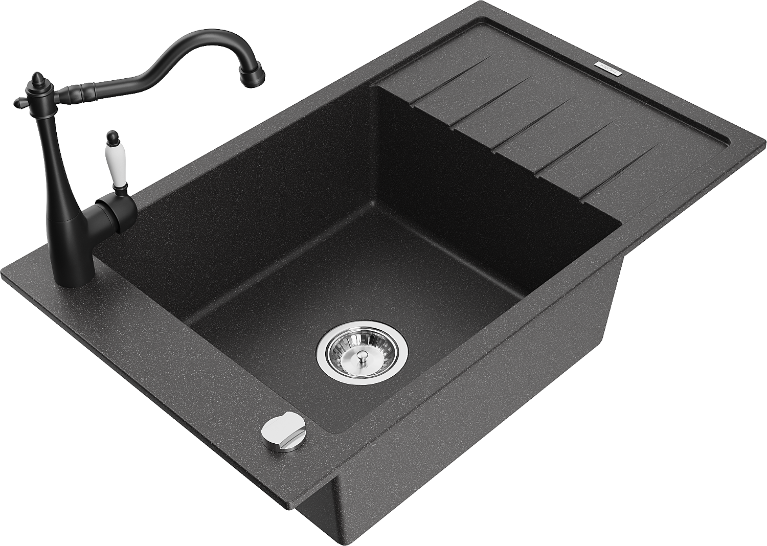 Mexen Elias granitdiskho 1-fack med avrinningsbräda och köksblandare Carla, svart med stänk - 6511-76-670700-70