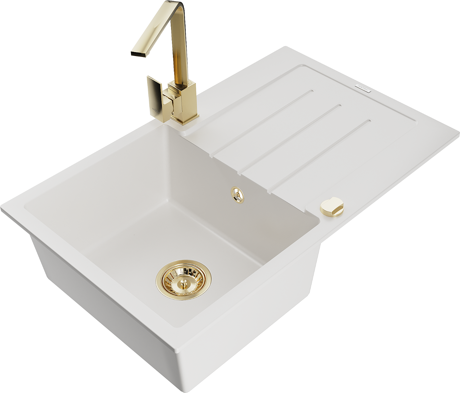 Mexen Bruno granitdiskbänk 1-fack med avlopp och köksblandare Rita, vit - 6513-20-670300-50