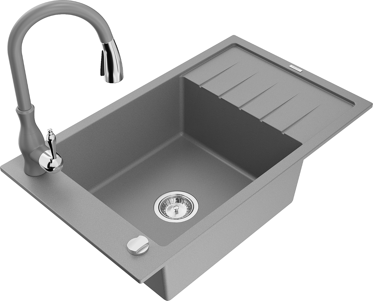 Mexen Elias granitdiskho 1-fack med avrinningsyta och köksblandare Savita, grå - 6511-71-672601-71