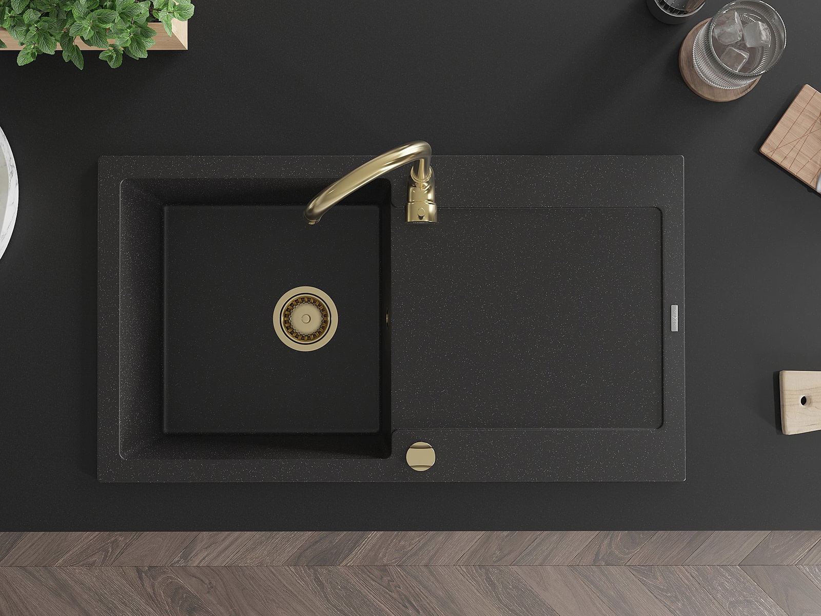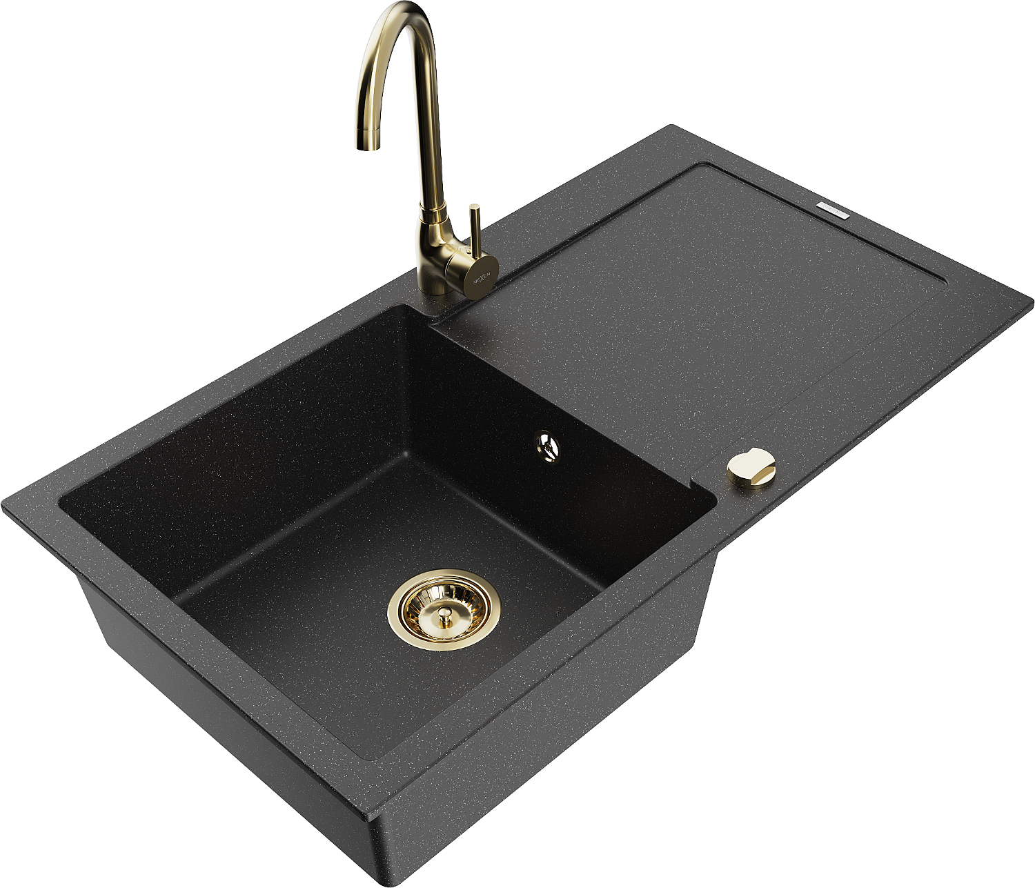 Mexen Leo granitdiskbänk med 1 kammare och avrinningsyta samt köksblandare Telma, svart/silver metallic - 6501-73-670200-50