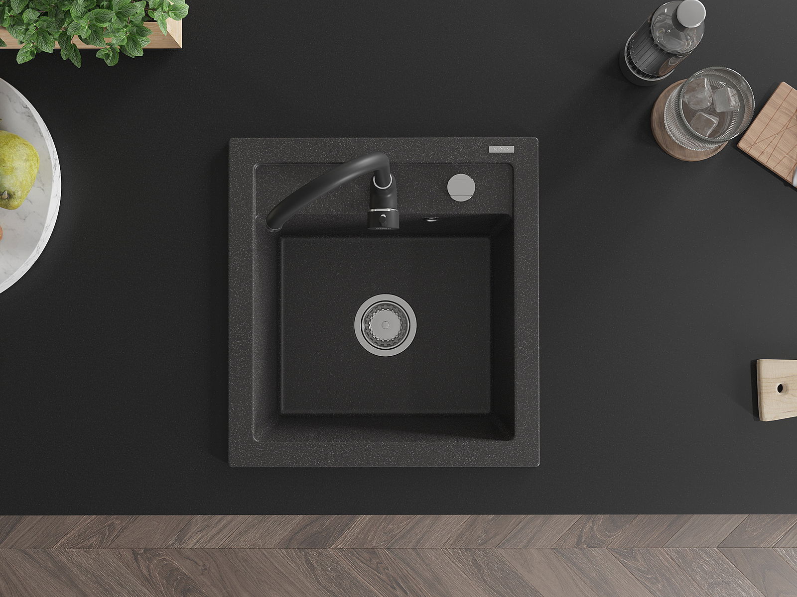 Mexen Vito granitdiskho med 1 ho med Telma köksblandare, svart med prickar - 6503-76-670200-70