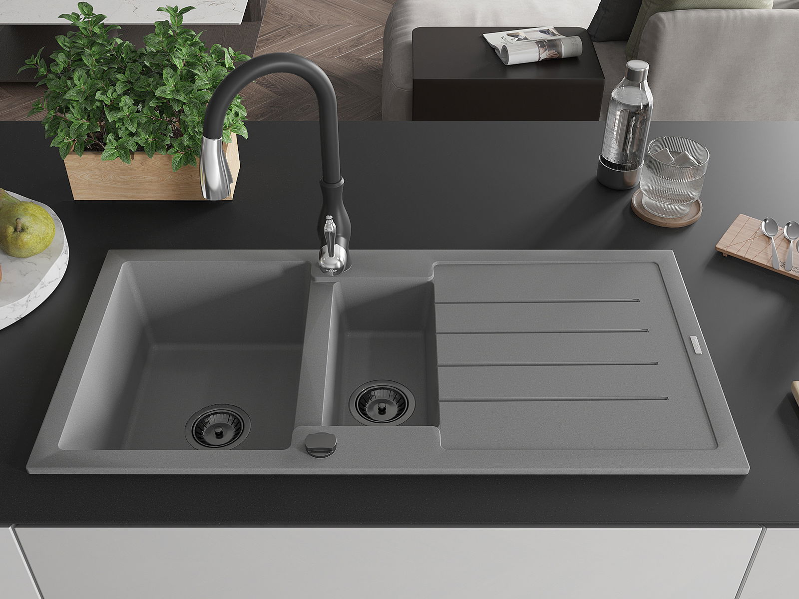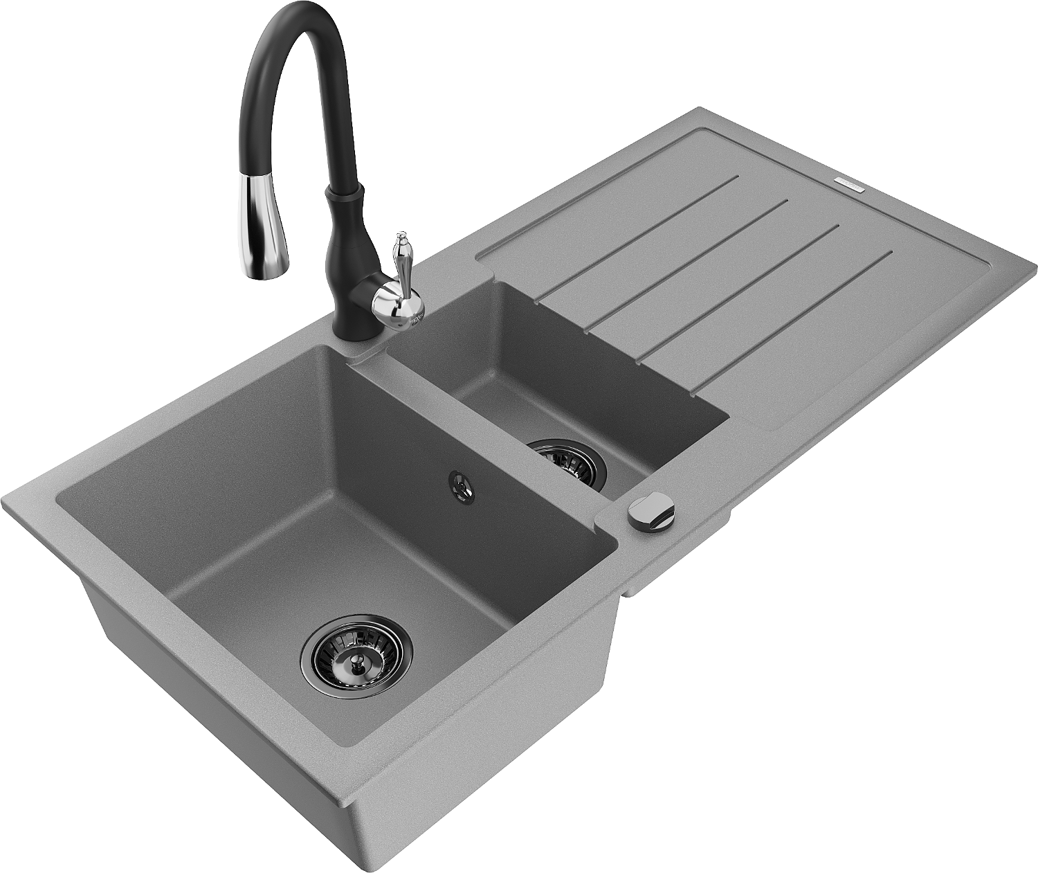 Mexen Andres granitvask 1,5-fack med avloppsbricka och köksblandare Savita, grå - 6515-71-672601-70-B