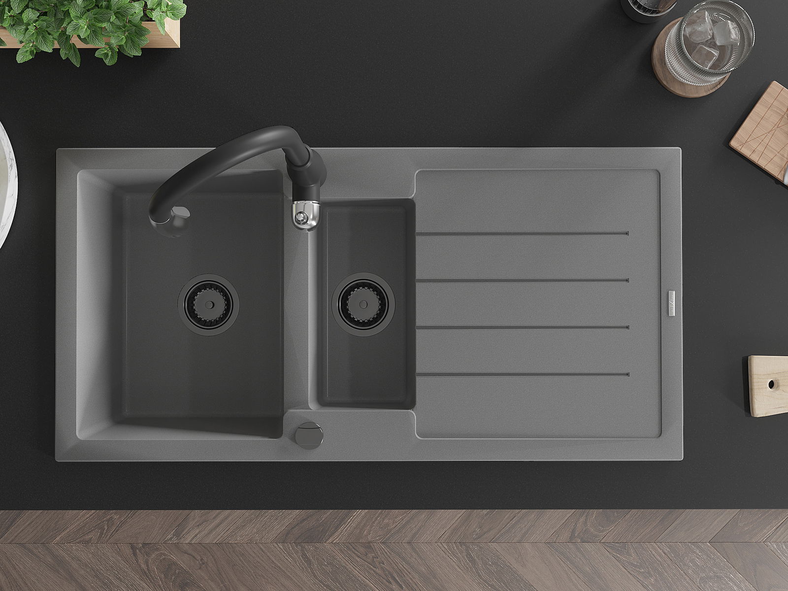 En väl skyddad yta på diskbänken förhindrar att smuts tränger in i dess inre strukturer. Tack vare detta är det ännu enklare att hålla diskbänken ren, och dess yta behåller sin estetik längre.
