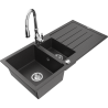 Mexen Andres Granitdiskbänk 1,5-kammare med avrinningsplatta och köksblandare Savita, svart/guldfärgad metallic
