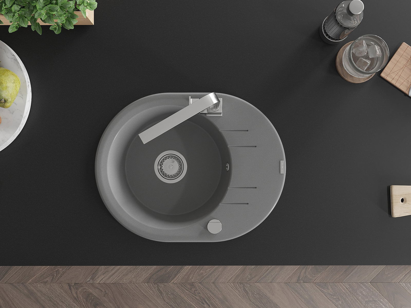 Mexen Kevin granitdiskho 1-grepp med avrinningsyta och köksblandare Rita, grå - 6517-71-670300-00