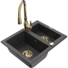 Mexen Carlos granitdiskbänk 1,5-fack med köksblandare Savita, svart/guldfärgad metallik - 6518-75-672601-50