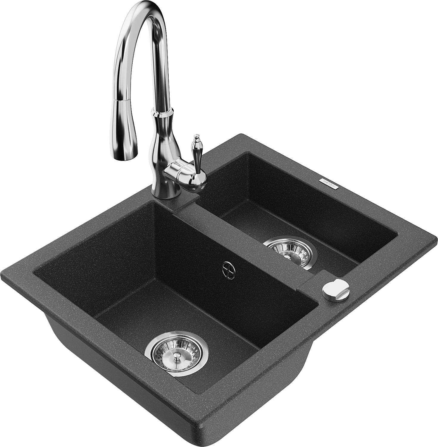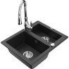 Mexen Carlos granitdiskbänk med 1,5 ho och Savita köksblandare, svart prickig - 6518-76-672601-00