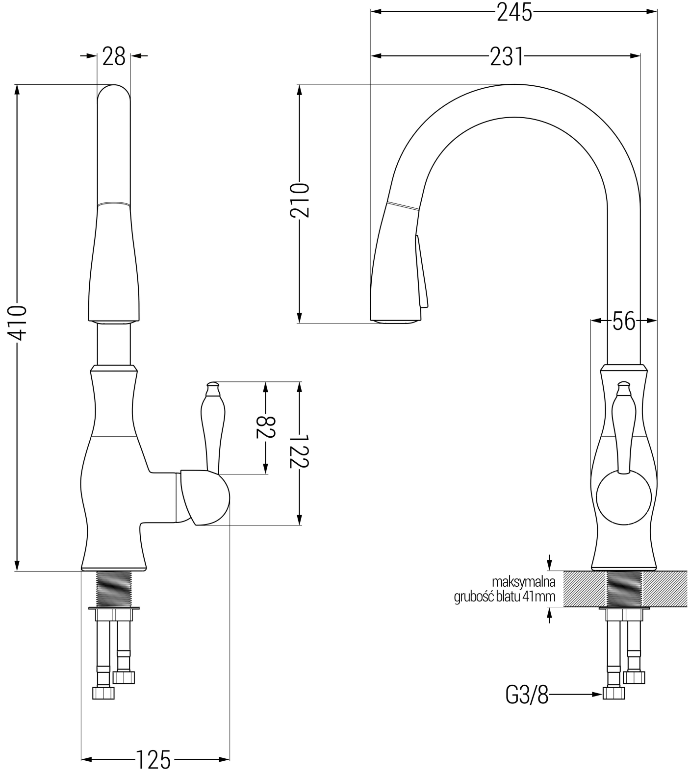 Blandare med utdragbar pip är en praktisk lösning i köket. Med hjälp av det utdragbara huvudet kan vi nå varje hörn av diskhon och stora kastruller, noggrant tvätta grönsaker och frukt utan att stänka ner området runt diskhon.