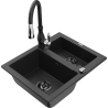 Mexen Carlos granit diskbänk 1,5-fack med köksblandare Savita, svart spräcklig - 6518-76-672601-70-B