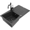 Mexen Cesar granitdiskbänk med en ho, avrinningsyta och köksblandare Carla, grå - 6514-71-670700-70-B