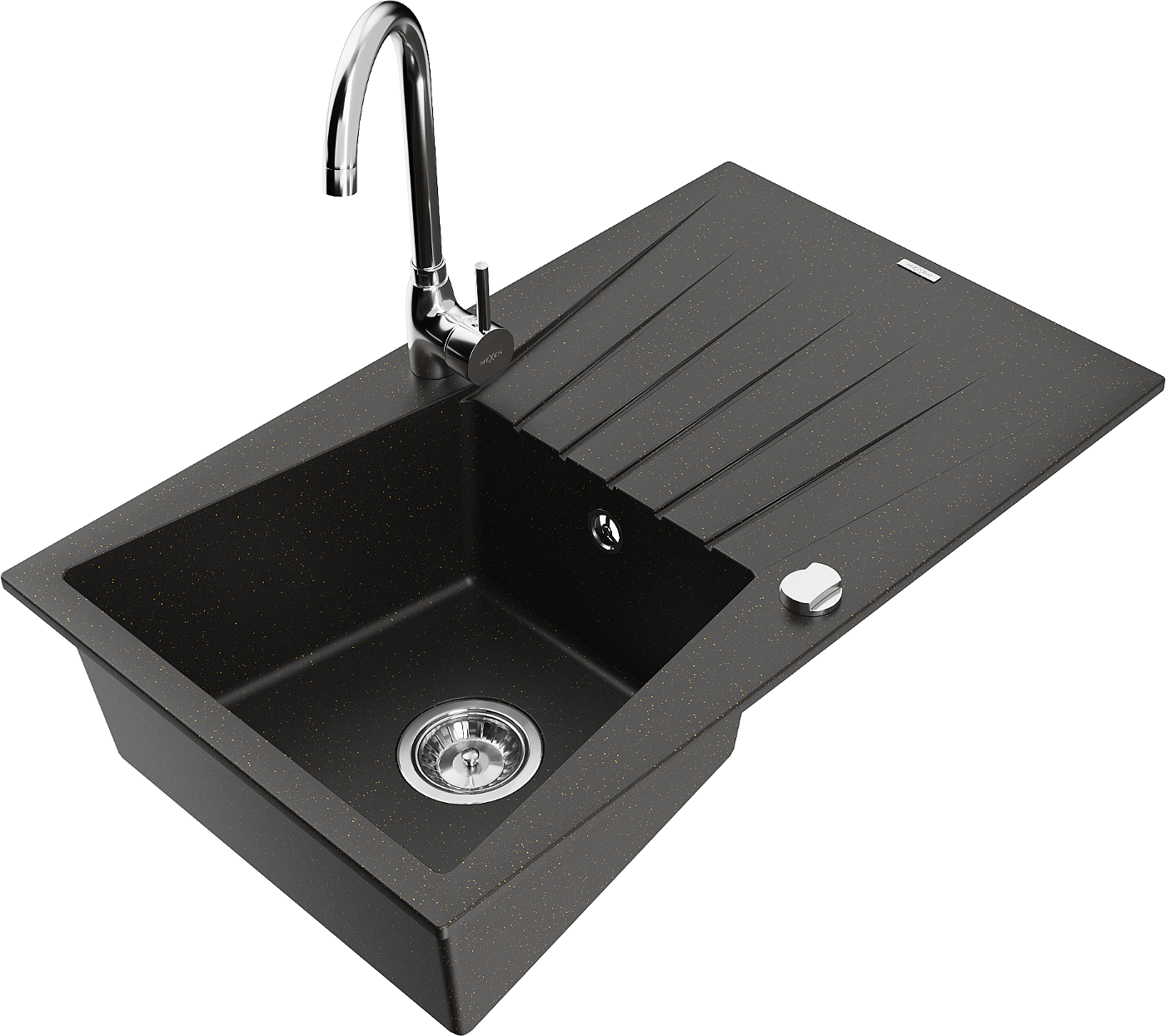 Mexen Cesar granitdiskho med 1 ho med avrinningsyta och kökskran Telma, svart/guld - 6514-75-670200-00