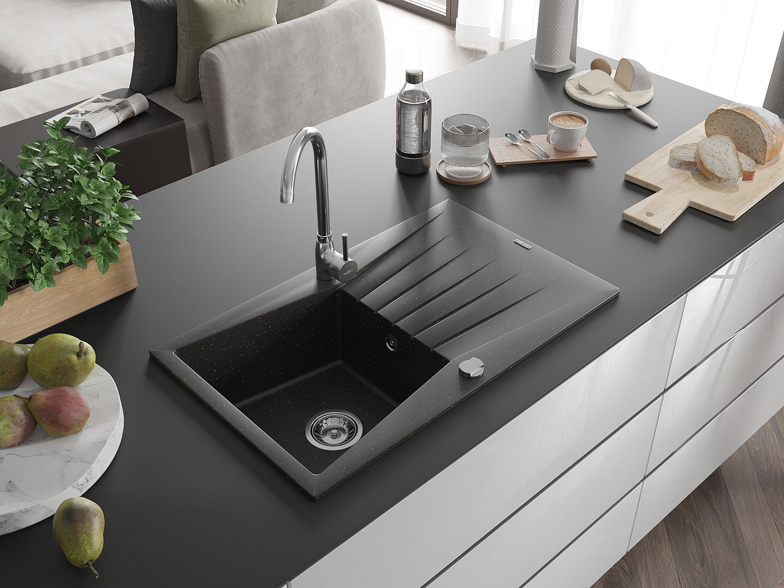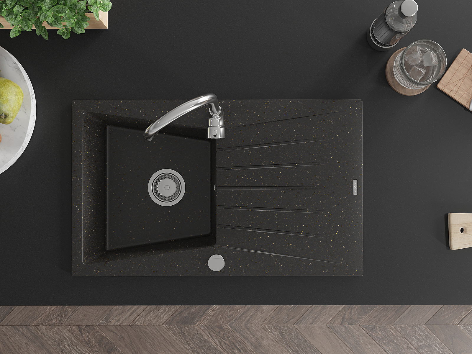 En väl skyddad yta på diskbänken förhindrar att smuts tränger in i dess inre strukturer. Tack vare detta är det ännu enklare att hålla diskbänken ren, och dess yta behåller sin estetik längre.