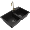 Mexen Tomas granitdiskho med 2 fack med Telma köksblandare, svart/guld metallic - 6516-75-670200-50-B