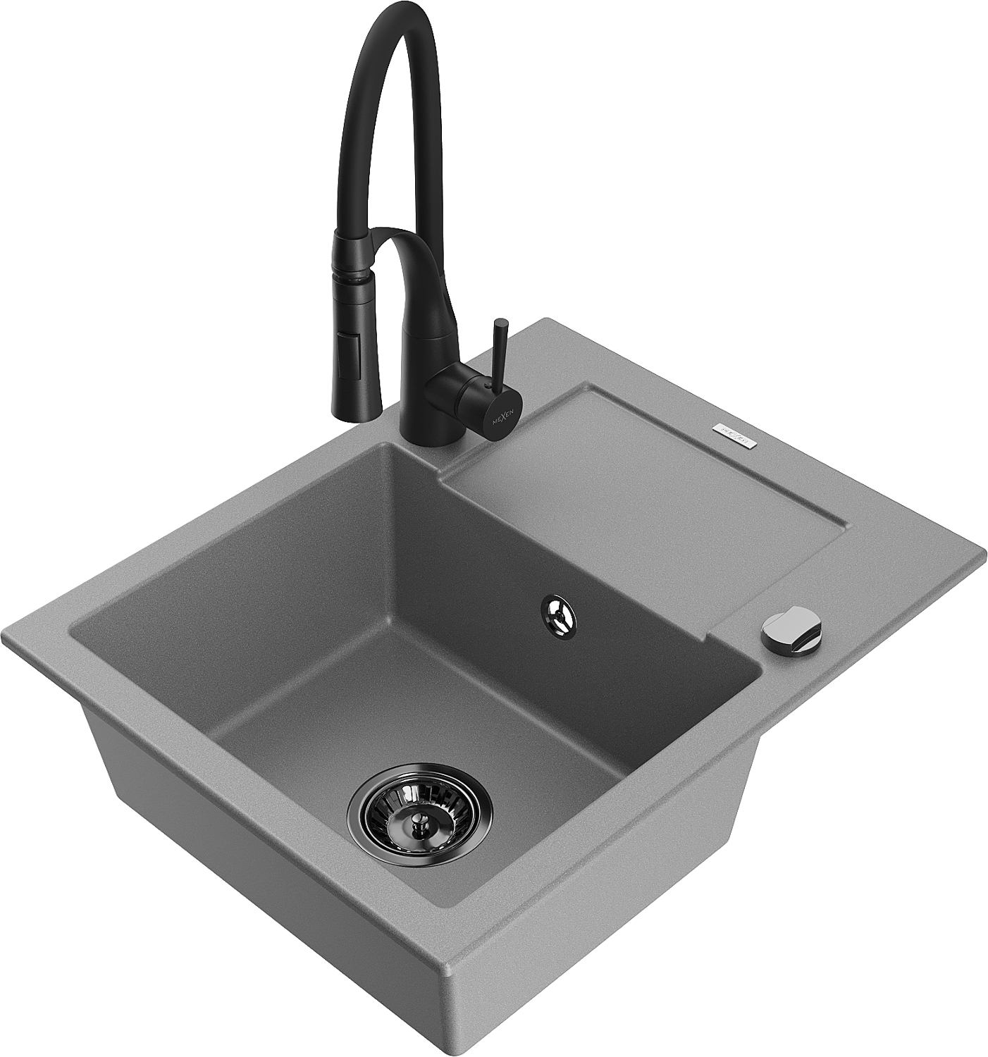 Mexen Enzo granitdiskbänk 1-fack med avrinningsyta och köksblandare Aster, grå - 6506-71-73450-70-B