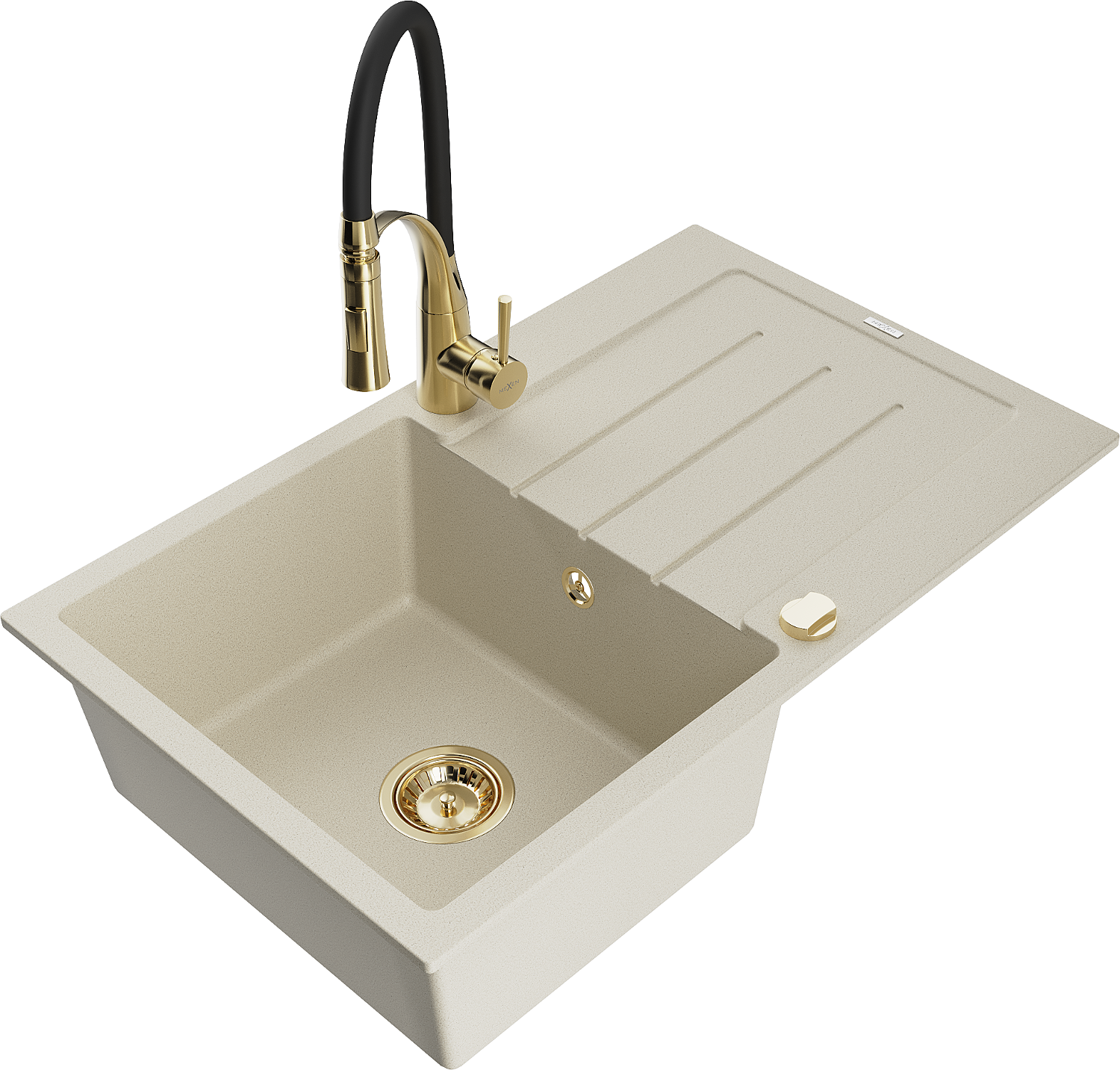 Mexen Bruno 1-fack diskho i granit med avrinning och köksblandare Aster, beige - 6513-69-73450-57-G