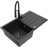 Mexen Bruno granitdiskbänk 1-fack med avrinning och köksblandare Aster, svart - 6513-77-73450-70-B