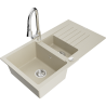 Ytan på diskbänken är fläck- och missfärgningsbeständig, vilket gör den lätt att hålla ren samt behåller sin färg under lång tids användning. Ett estetiskt och praktiskt komplement till varje kök.